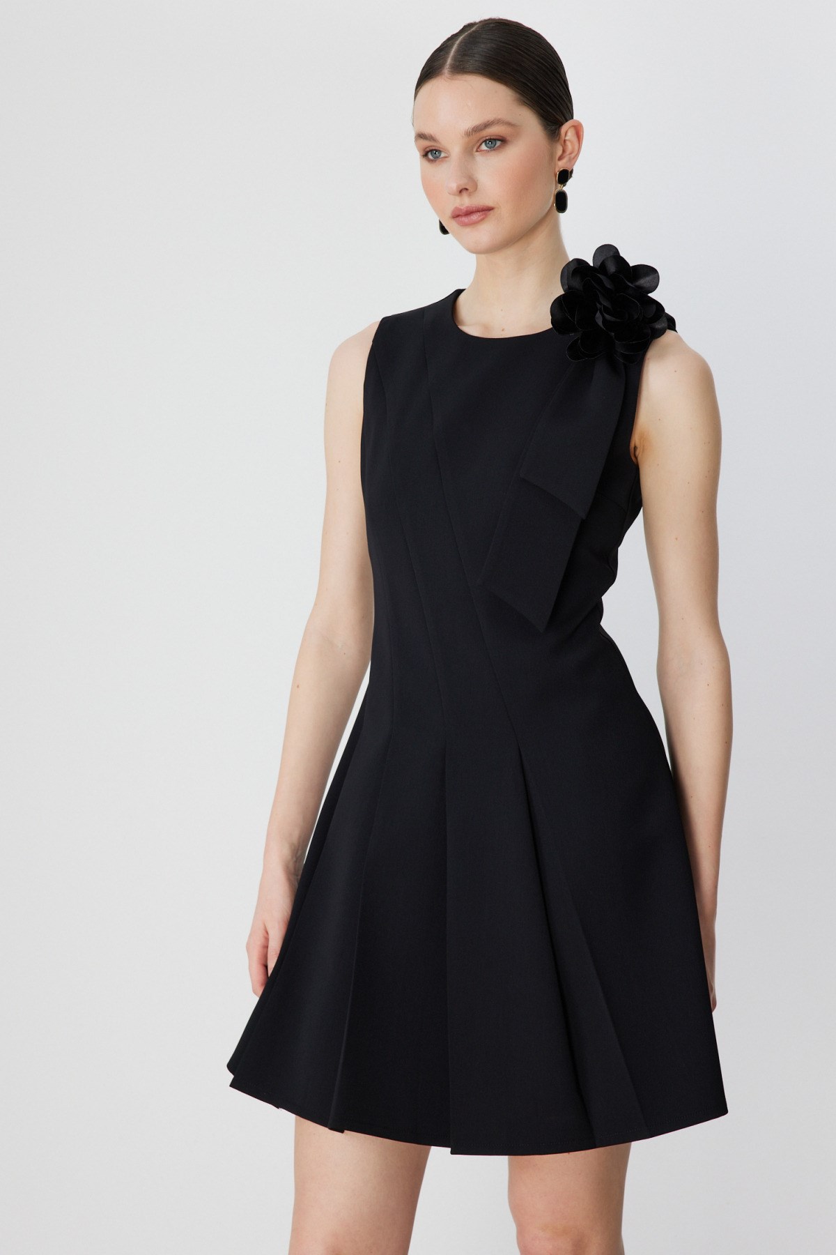 Ekol - Omzu Gül Aksesuarlı Kolsuz Mini Elbise 26Y.EKL.ELB.06136.1