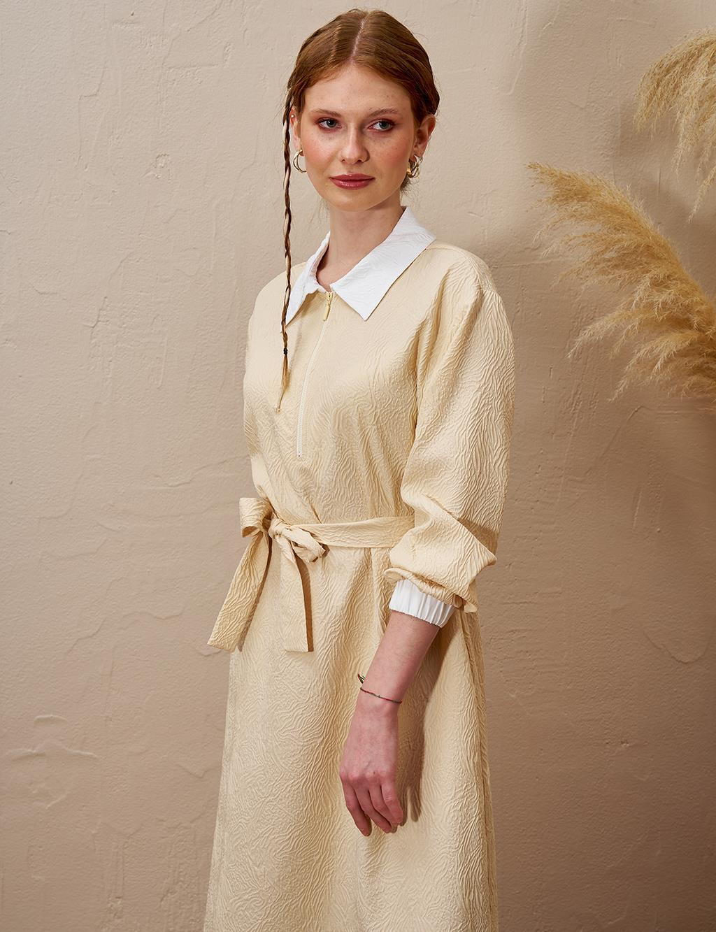 KAYRA Yarım Fermuar Kapamalı Gofreli Elbise, şıklığı ve rahatlığı bir araya getiriyor. Gofreli kumaşı, vücuda oturan kesimiyle kullanıcısına gün boyu konfor sunarken, yarım fermuar detayı ise modern bir görünüm sunar. Günlük şıklığınız için ideal olan bu elbiseyi aksesuarlarla destekleyebilirsiniz.
