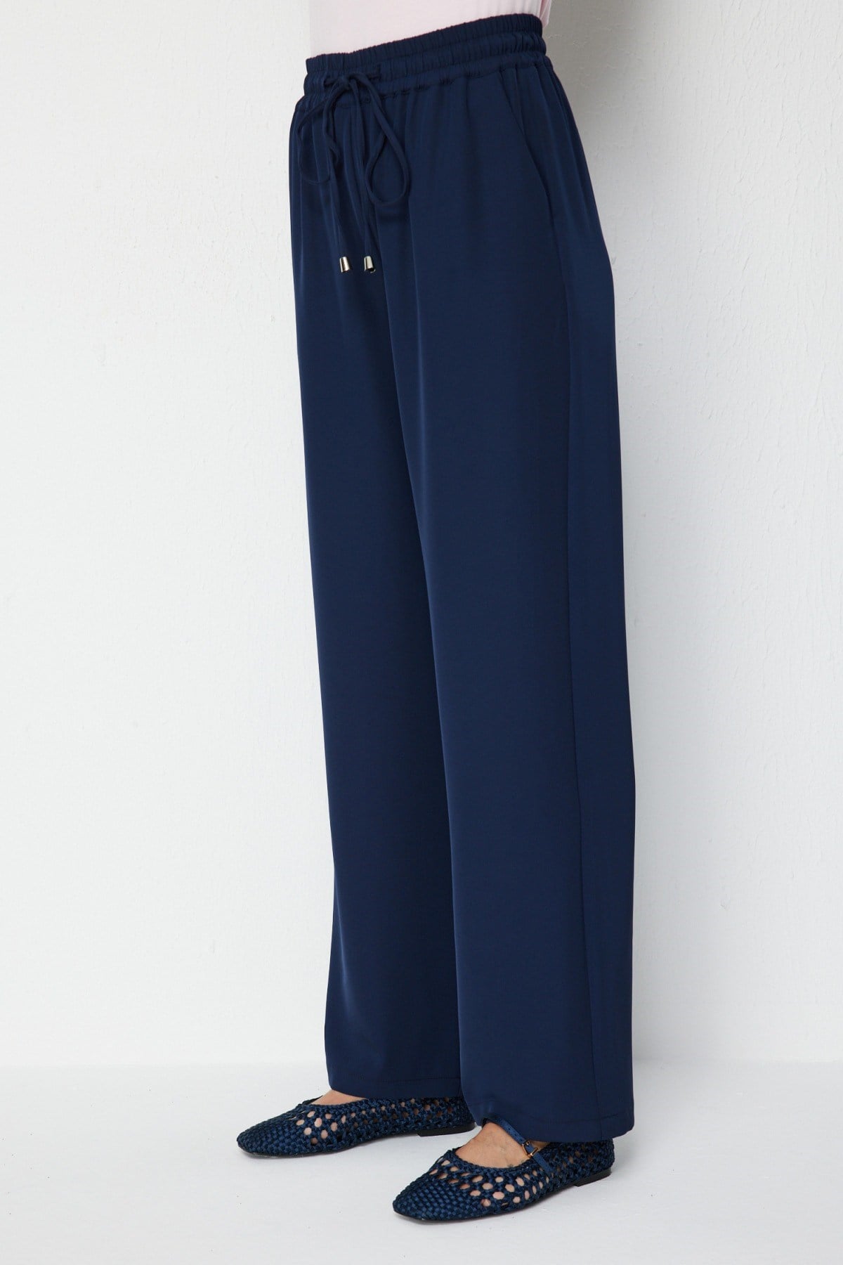 Ürün Kalıbı: Regular Ürün Kalınlığı: İnce Ürün Boyu: 105 Kumaş İçeriği: %95 Polyester %5 Likra Kumaş Tipi: Dokuma Astar Durumu: Astarsız Bel: Lastikli Paça Tipi: Bol Paça Kapama Şekli: Bağcıklı Cep: Yan Cep Ürün Sezonu: 2026 Yaz Manken Ölçüleri: 1.76 cm 84/61/89 - Manken en küçük bedeni giymektedir.